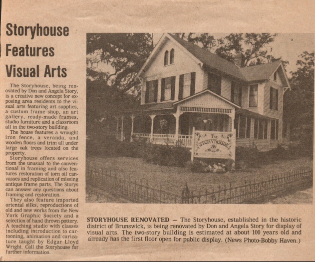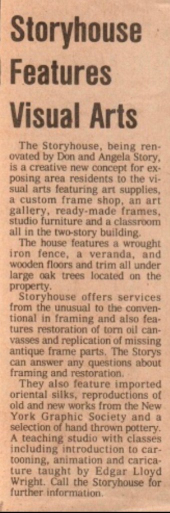 –The newspaper clipping left in our packet of information tell that the house was zoned commercial, named Storyhouse, and used as a framing shop/visual arts studio in the early eighties. I love this so much!