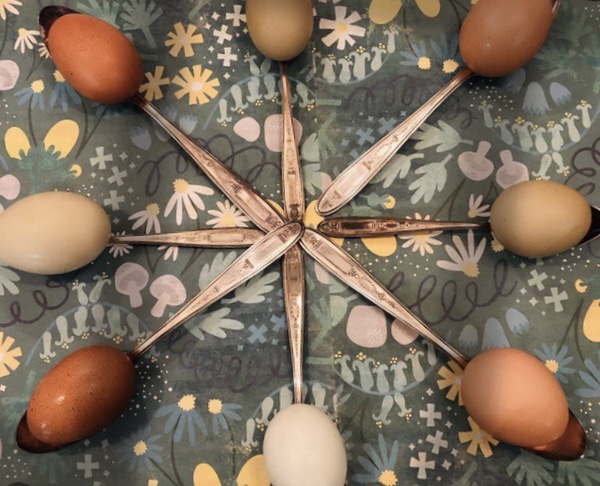 These eggs are so beautiful I almost didn’t want to eat them. Brown, blue, green….not a white egg in the clutch. They almost look like art.