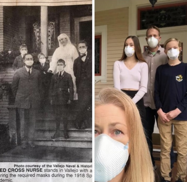 A woman in my “Old House” group posted the following picture. Both pictures were taken on her front porch. The first in 1918 during the Spanish Flu outbreak, and the second in 2020 during the COVID 19 pandemic.
