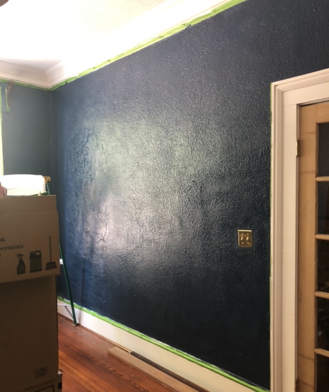 It was originally painted a flat hunter green (another shade I tend not to enjoy.) The green (although not my favorite) complimented the wood of the fireplace, pocket doors and trim but just didn’t feel right. It felt faded and dated and dull.
