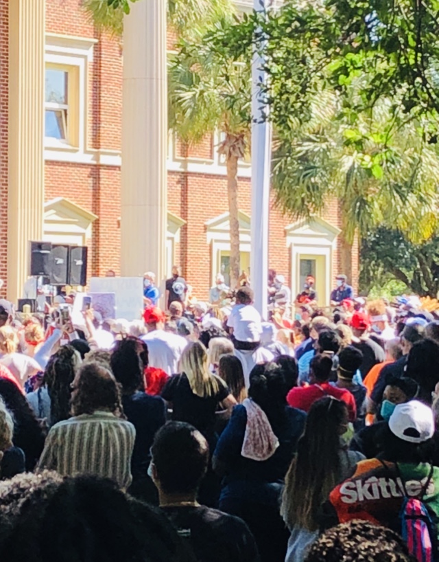 There was a rally today. Ahmaud’s birthday. There was a run ahead of the rally, 2.23 miles, a reminder of the date he was murdered, a reminder of justice delayed. One of our neighbors purchase 1,000 entries and then gave them away. Everyone showed up.