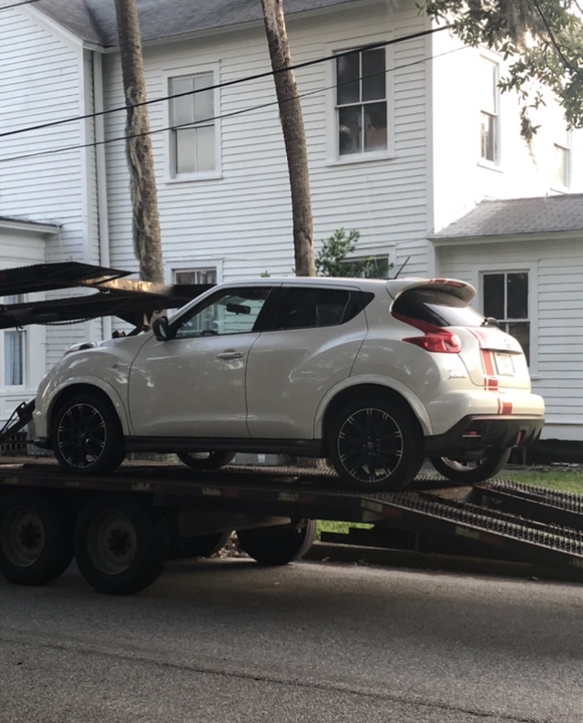 I was not sure I would ever love again after that, and then…I spotted this little number on one of the used car sites. She is a six speed, 2014 Nissan Juke. White with red side mirrors and a red racing stripe. (A tribute to my beloved red Juke.)
