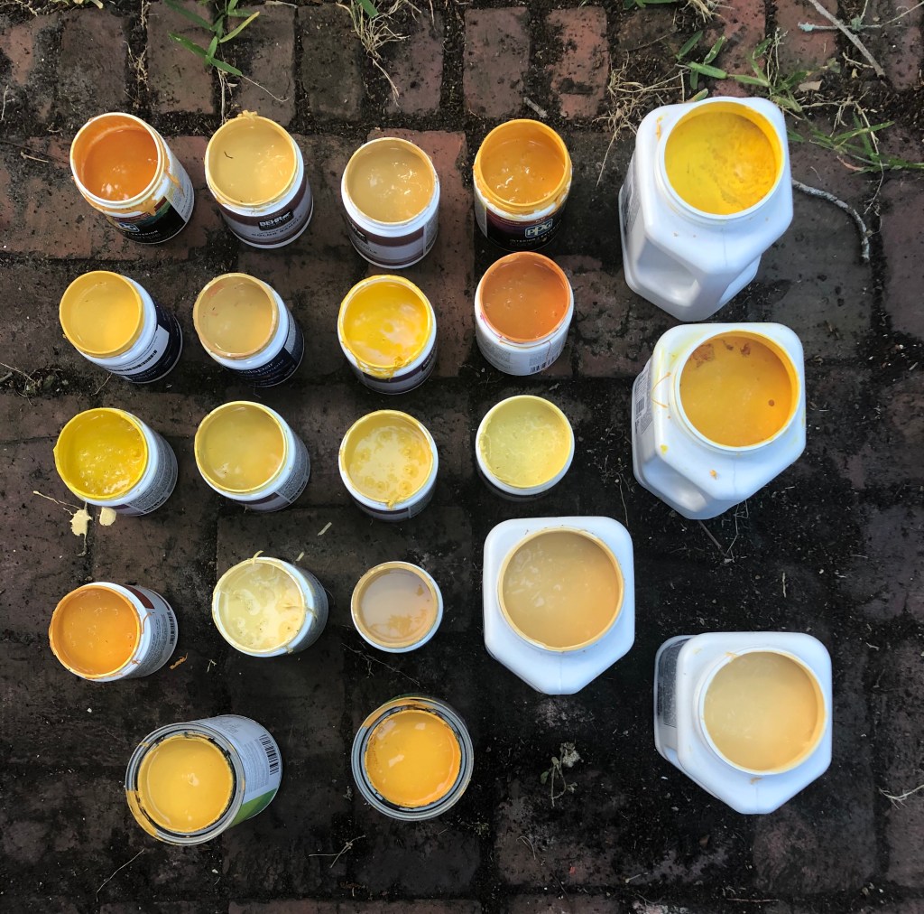 Over the months (yes….months) I acquired a palette of samples with names ranging from Marigold to Sunflower. Wheat Stalk to Glen Ridge Gold. Ginger Ale to Soft Boiled Egg. And every yellow flower, landscape feature and food in between.