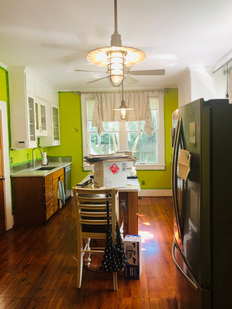 I had decided on Limon Fresco by Sherwin-Williams. A light yellowish green just a few shades darker than chartreuse. I thought it would be bright and playful and give the room a tropical feel that would compliment the white trim and play off of our white and dark wood kitchen set.