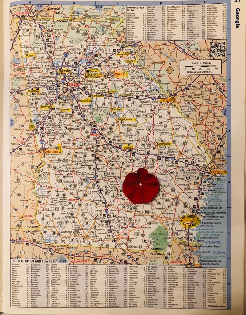 I had my “Buddy Poppy,” newly acquired from the Veteran outside of the bank, secured to my purse strap for good luck, my oversized, unwieldy and completely impractical atlas for security, and a heart full of anticipation and doubt.