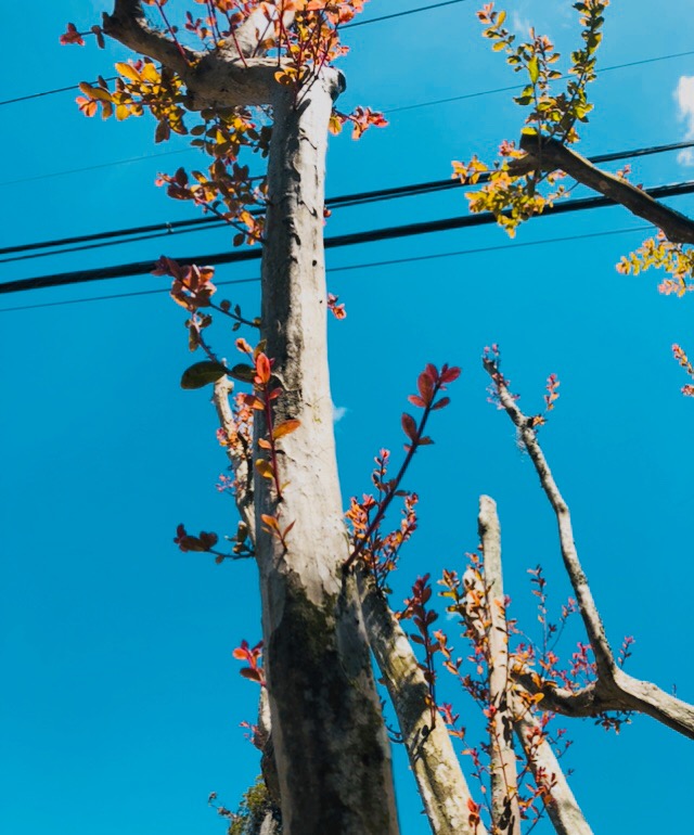 From ever severed branch and complacent area, off shoots are being called forth, a Medusa head of regrowth forming an army on an upward assent, on a quest to reclaim the sun.