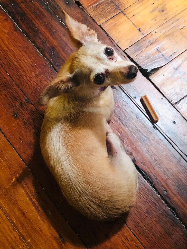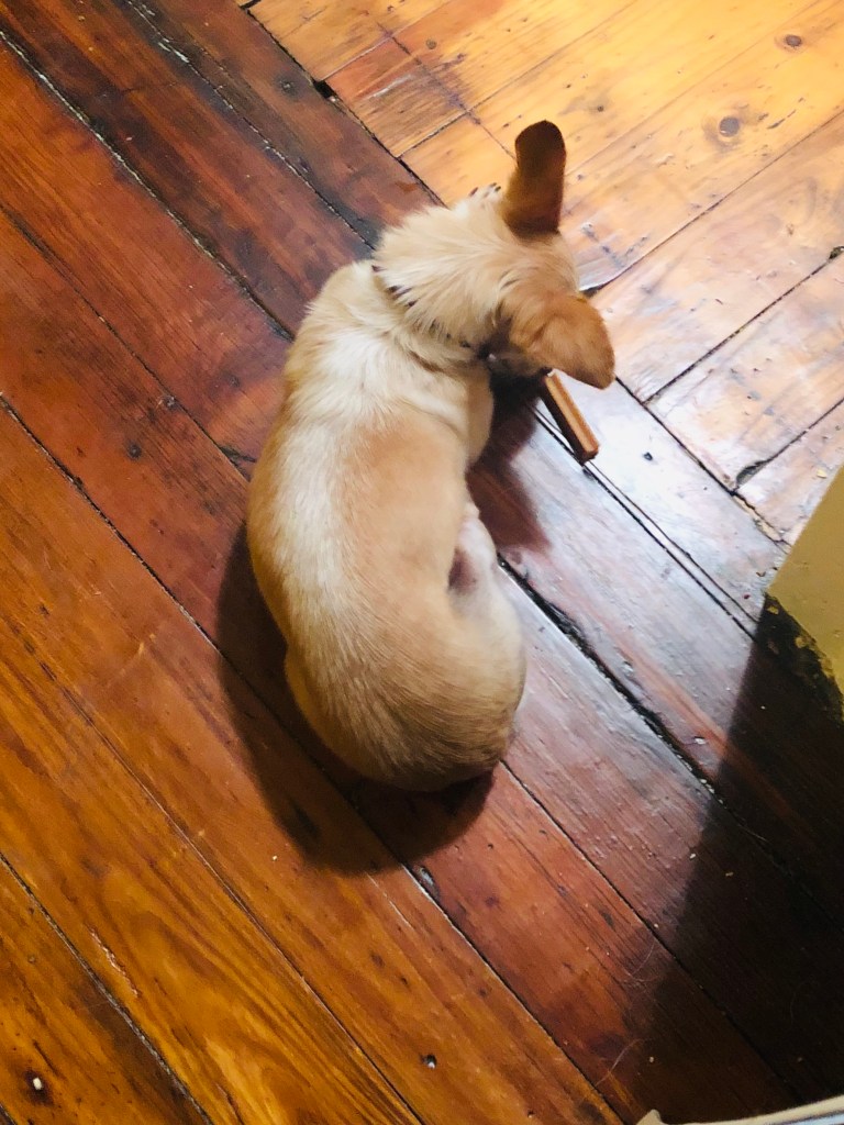 He guards the chewy that he doesn’t really want with every ounce of ferocity in his tiny body.