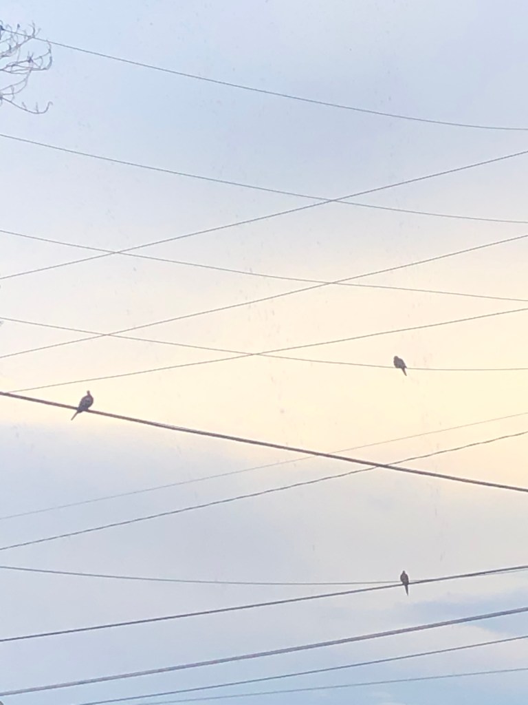 I imagine it has hushed all over town as birds sit on the wires, cross the lines of communication, feel the pulse quicken in the tension lines, fly away and listen to the squabble left in their wake.
