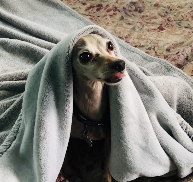 He thinks he is a ghost, so I pretend to be afraid; when he howls under the blanket, try not to laugh when he pops his head out in what I imagine is his version of “BOO!”