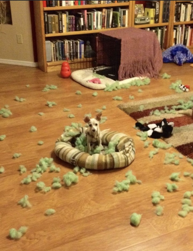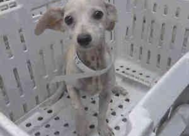The dog in question, the one huddled in the corner of an oversized pen in an overly loud and crowded animal shelter, trying to disappear into the shadows, was Dobby.
