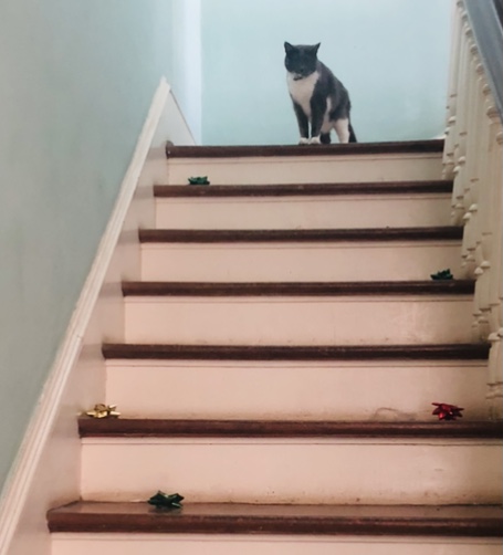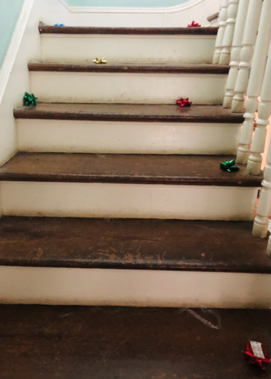 We are unaware of the battle she has fought to get here; to allow herself to trust. Unaware of the bag of Christmas bows she has dragged out, slayed and protected us from; the rouge yogurt wrapper, the cat toy.