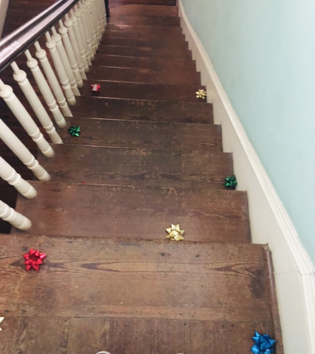 The gifts and offerings she has left strewn where we will see them in the morning.