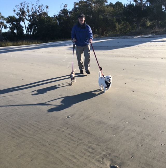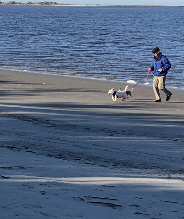 Watch as my husband and carefree dogs turn and head in my direction. Feel the sharp spray of sand kicked up by determined paws as they pass me by, headed to the future, racing to the sea.